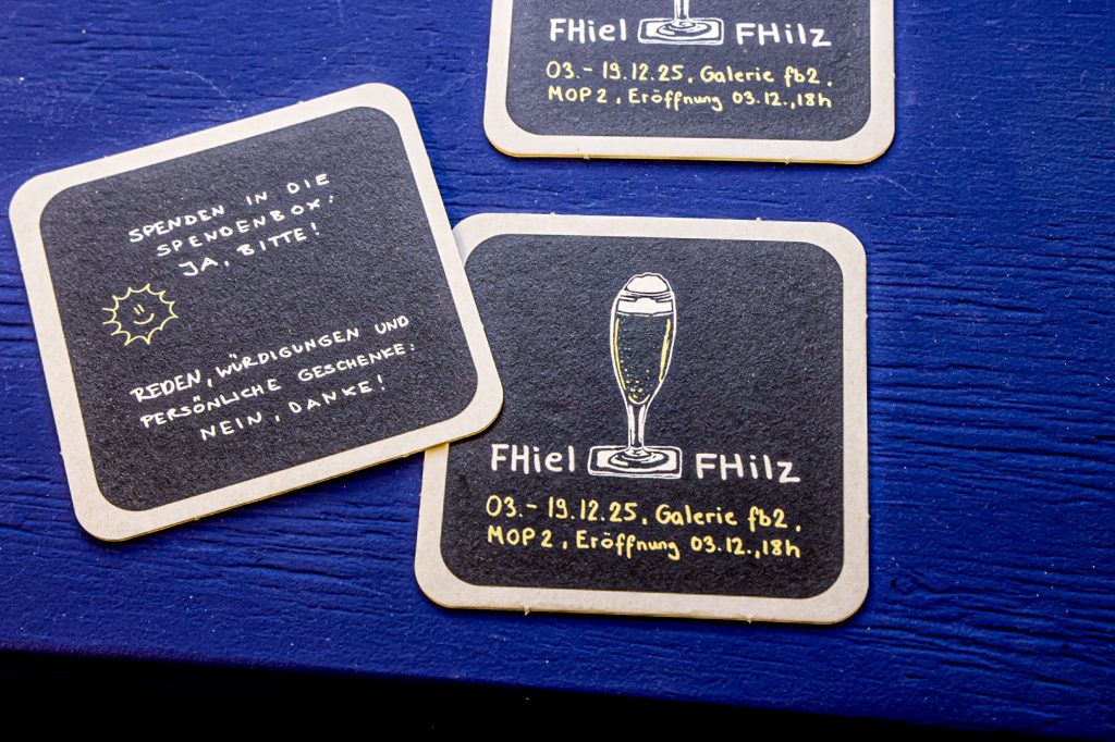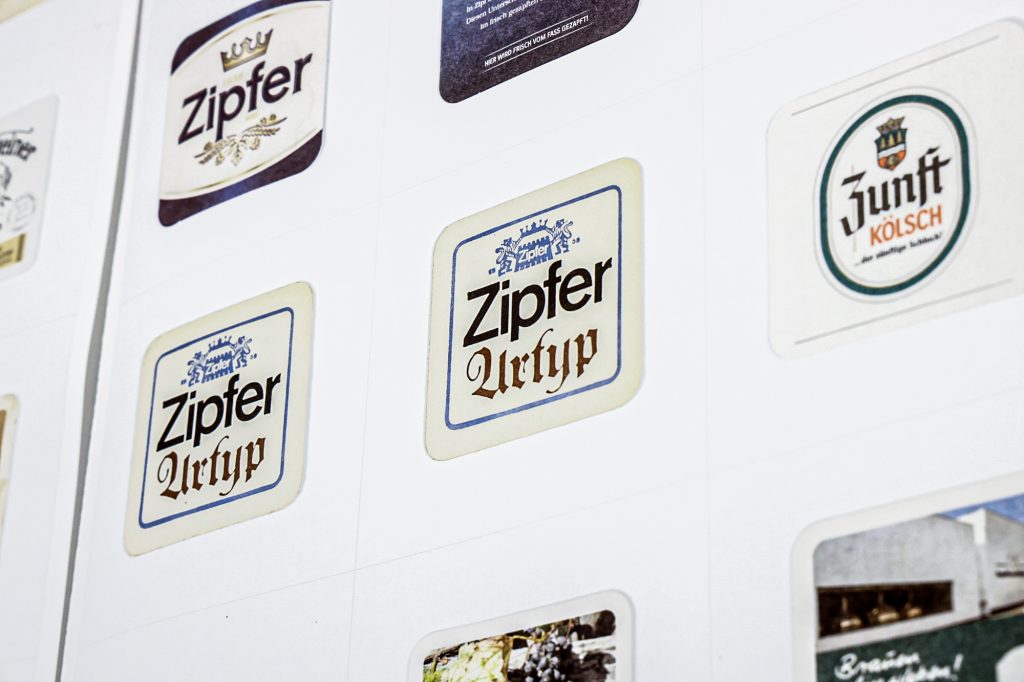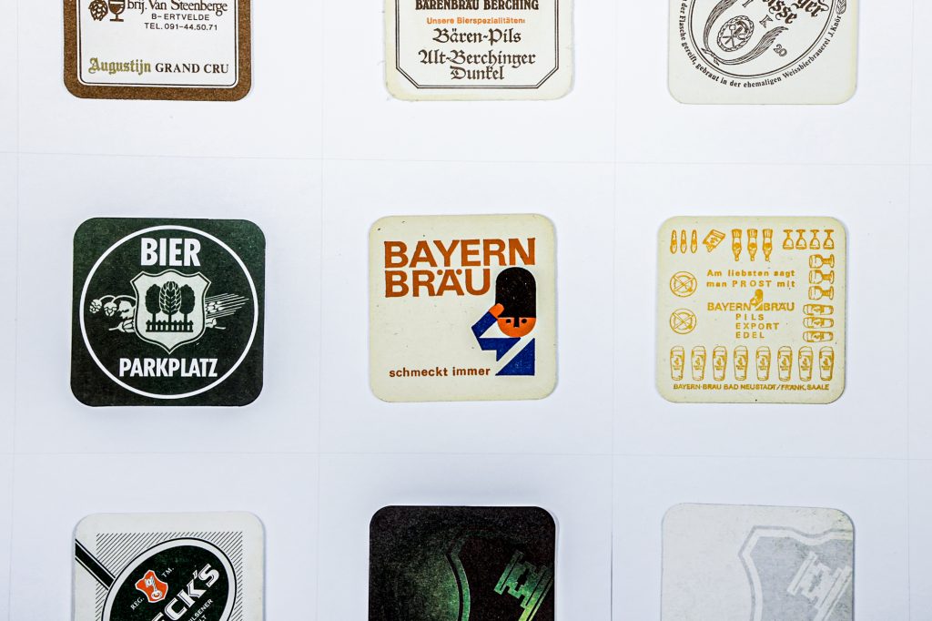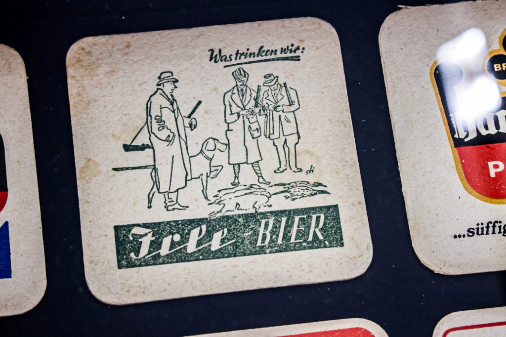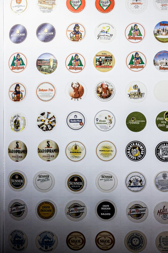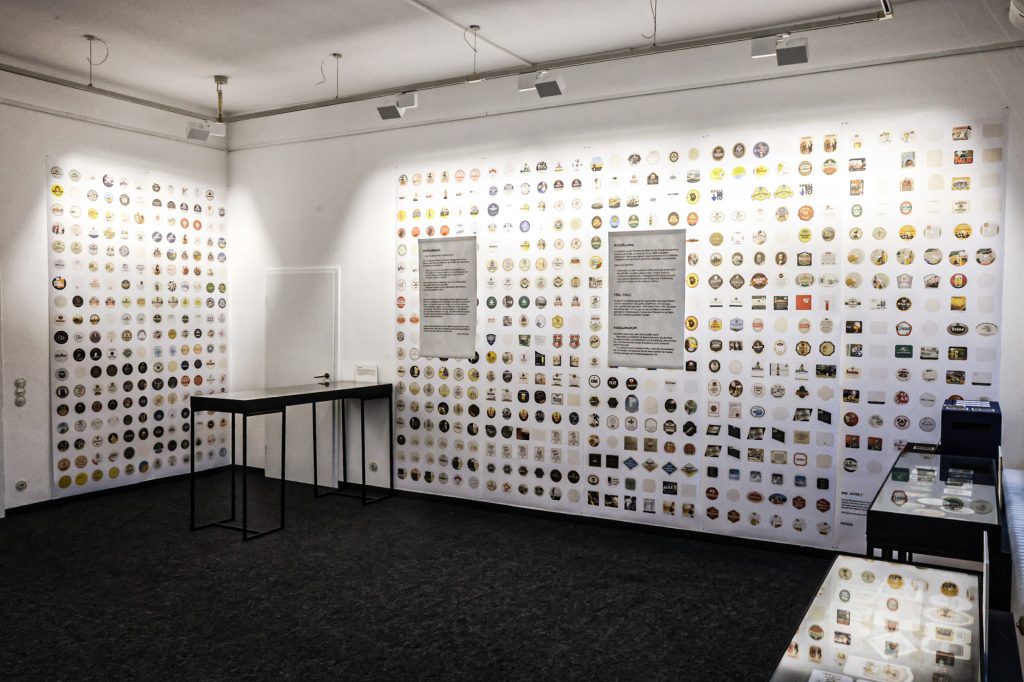 Hier der gekürzte Bericht des Sammlers: »Vor ca. 30 Jahren kam ich mit dem Kollegen Bernd Dicke, damals Leiter der Druckwerkstatt, auf die Idee eine Bierdeckelausstellung zu veranstalten: »Sollte ich es schaffen im Fachbereich altersbedingt in Rente gehen zu können, wollte er das Ausstellungsdesign und die Präsentation besorgen und ich die Bierdeckel und einen Schluck zu trinken. Bernd würde dann ein halbes Jahr nach mir in Rente gehen. Also passte das. So war unser Plan. Bierdeckel schienen uns ein interessanter Mikrokosmos der Gebrauchsgrafik zu sein. […] Man sieht Arbeiten und Kampagnen größerer Agenturen und fast schon selbstgemachte Laiengrafik. Viele Deckelmotive überdauern Jahrzehnte, manchmal wurden im Laufe der Jahre nur Internetadressen ergänzt. Und oft findet sich Grafik aus längst vergangenen Jahrzehnten. Natürlich eignet sich das Medium auch zum Nachvollziehen von Logo- und Markenentwicklungen. Auf jeden Fall passt dieses Randthema der Gestaltung auch an einen Designfachbereich.[…] Leider hat der Kollege Bernd Dicke diese Ausstellung nicht mehr erleben können, aber beim Gedanken an die Ausstellung hatte ich ihn kaum mal einen Moment nicht im Sinn. Danke, Bernd!«