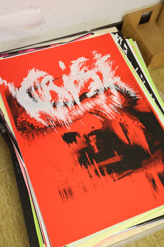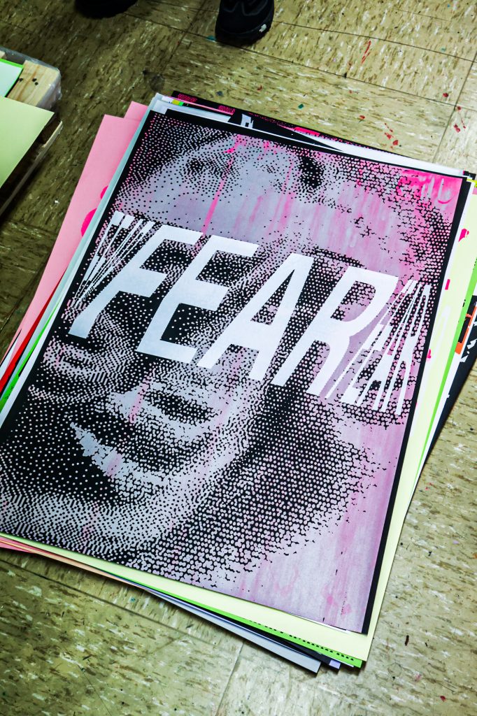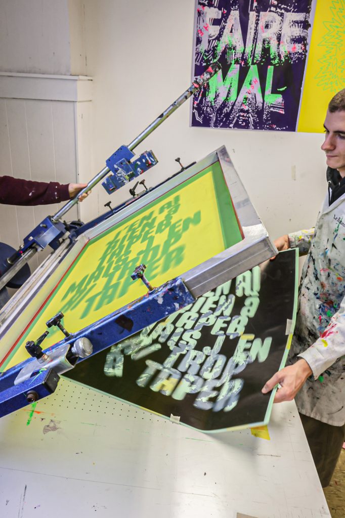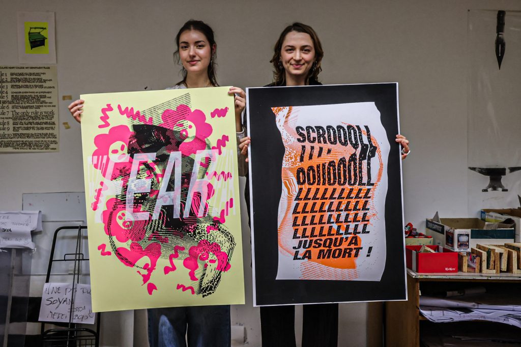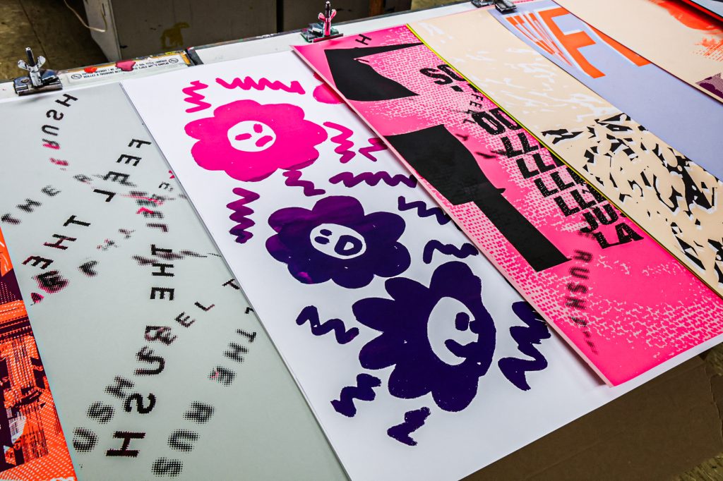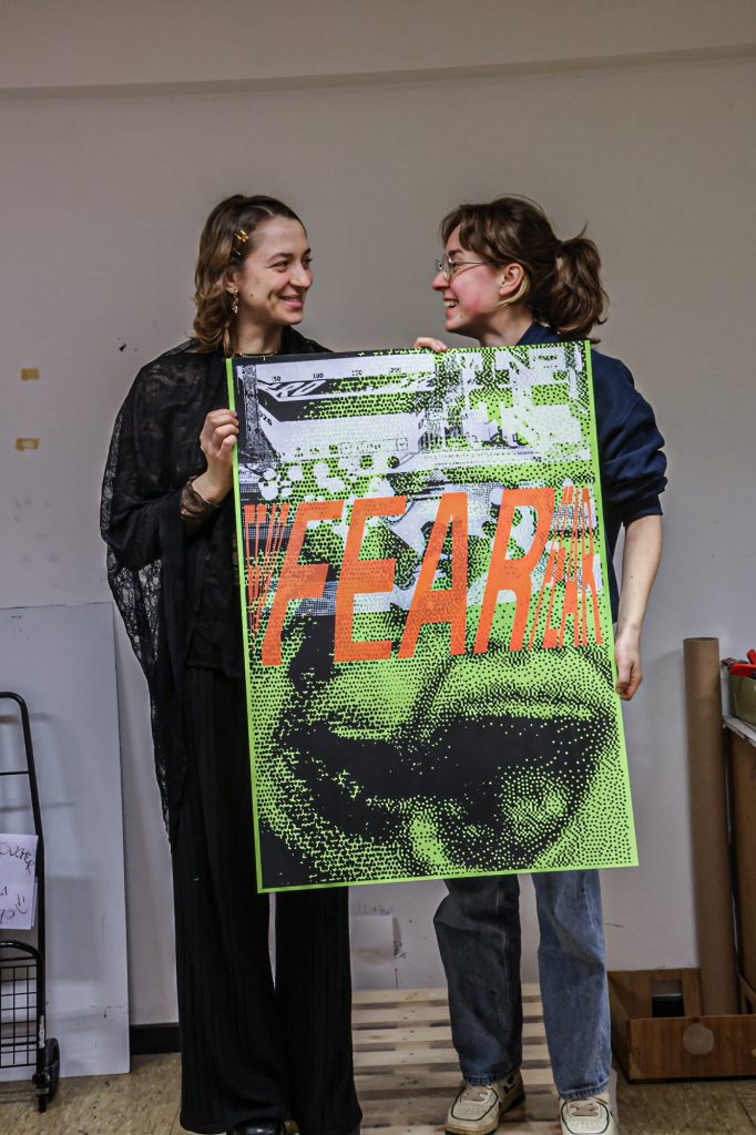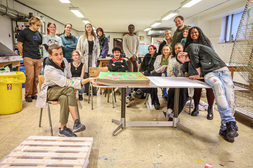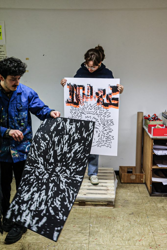 From February 5–11, a screen-printing workshop took place in Brussels, led by Lars Harmsen (@posterrex) with third-year Graphic Design students (B3) at ESA Saint-Luc Bruxelles. Around 20 students participated in the intensive program, working on the chosen theme “Adrenaline.” In just two days, more than 200 posters were produced. For many participants, it was their first experience with screen printing, and the excitement for the process quickly became contagious.