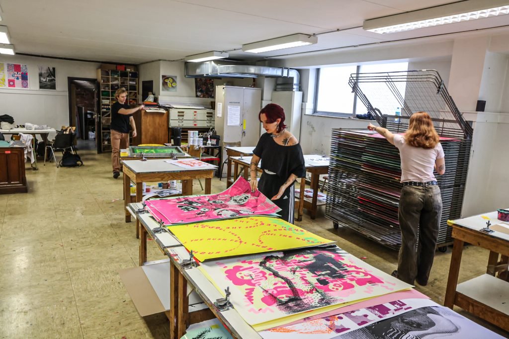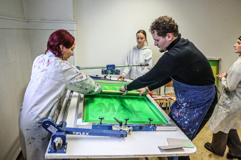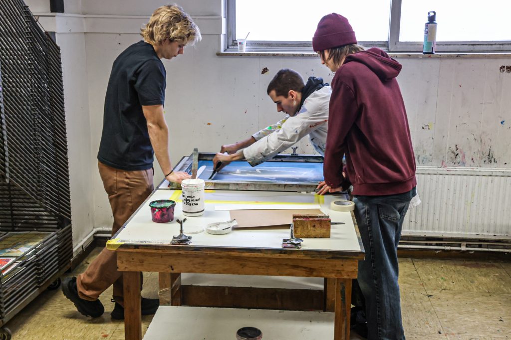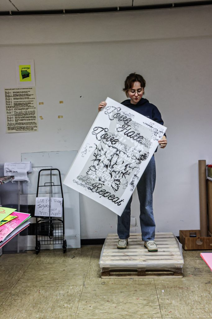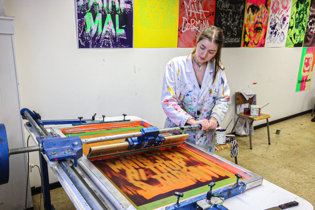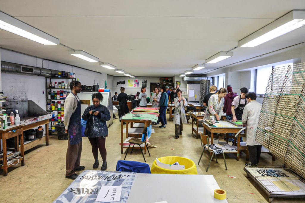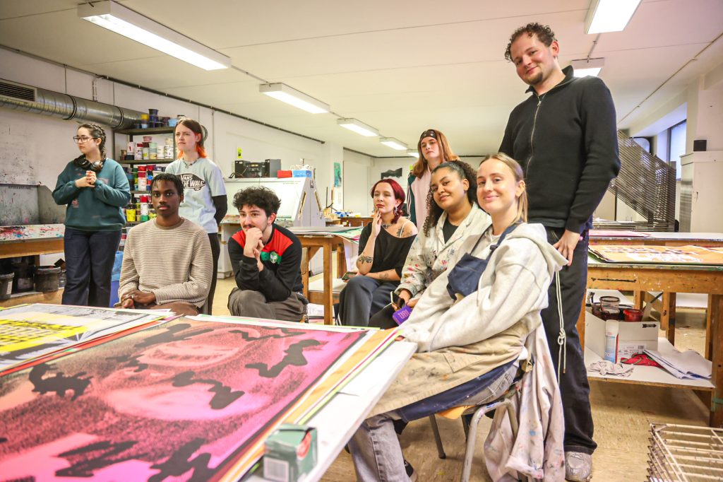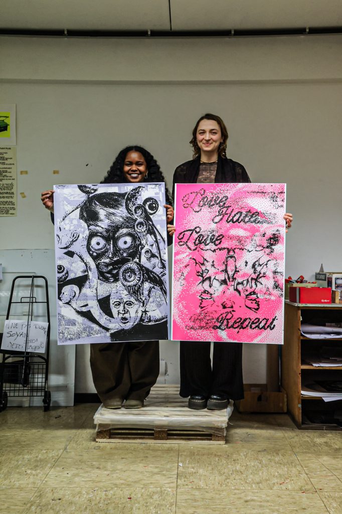 From February 5–11, a screen-printing workshop took place in Brussels, led by Lars Harmsen (@posterrex) with third-year Graphic Design students (B3) at ESA Saint-Luc Bruxelles. Around 20 students participated in the intensive program, working on the chosen theme “Adrenaline.” In just two days, more than 200 posters were produced. For many participants, it was their first experience with screen printing, and the excitement for the process quickly became contagious.