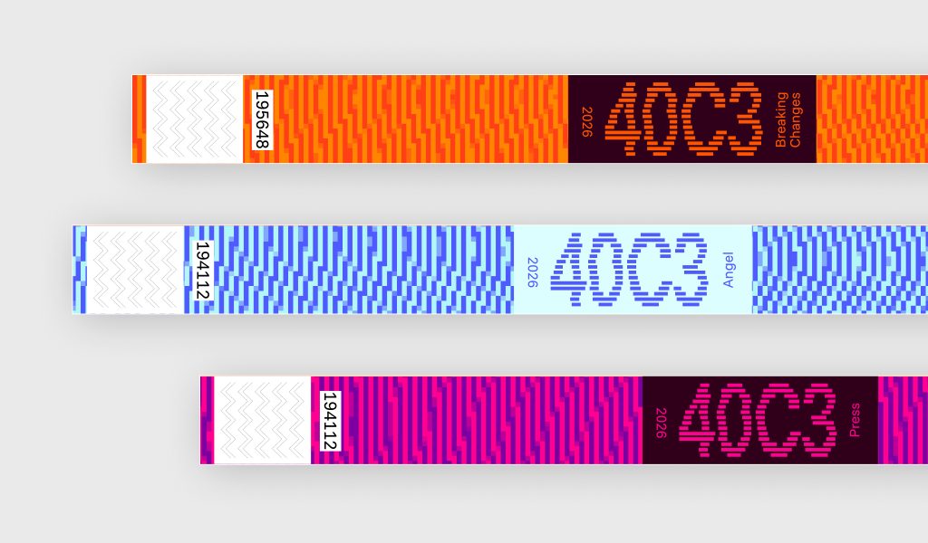 »Breaking Changes« ist das fiktive Motto des 40. Chaos Communication Congress: Im Technikkontext ein Begriff für Änderungen, die nicht mehr abwärtskompatibel sind. Gesellschaftlich steht er für Zäsuren, die sich nicht mehr mit kleinen Veränderungen beheben lassen – wie beispielsweise Rechtsruck oder Klimawandel. Das gestalterische Konzept begreift Veränderung als Prinzip: Schrift, Icons und Muster werden algorithmisch verfremdet und animiert – je nach Kontext subtil oder bis an die Grenze der Leserlichkeit. Farben und Animationen sollen alarmieren.