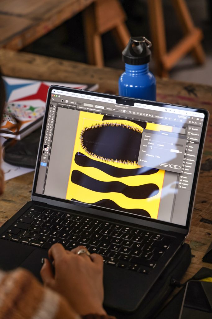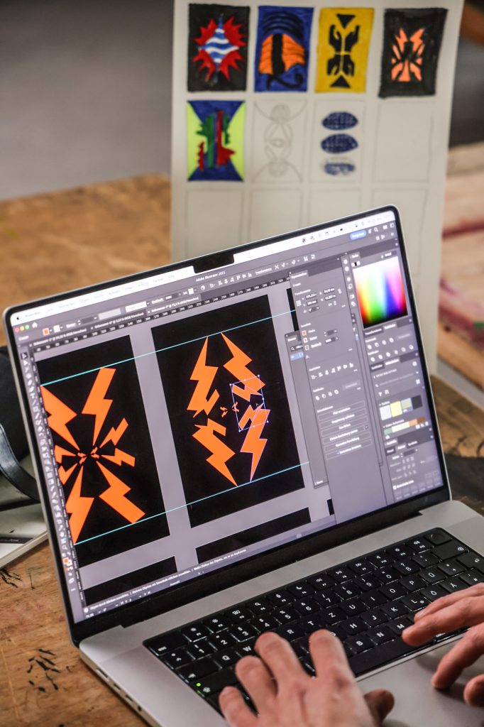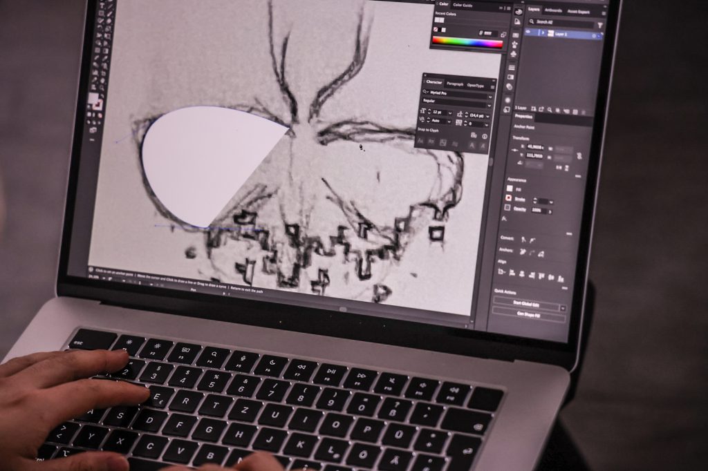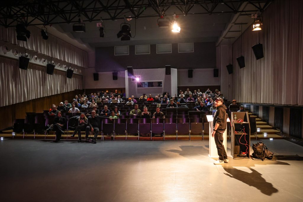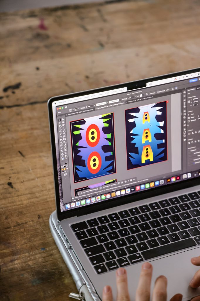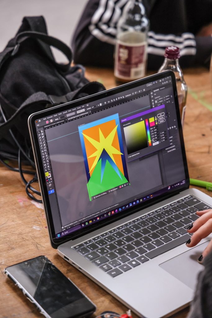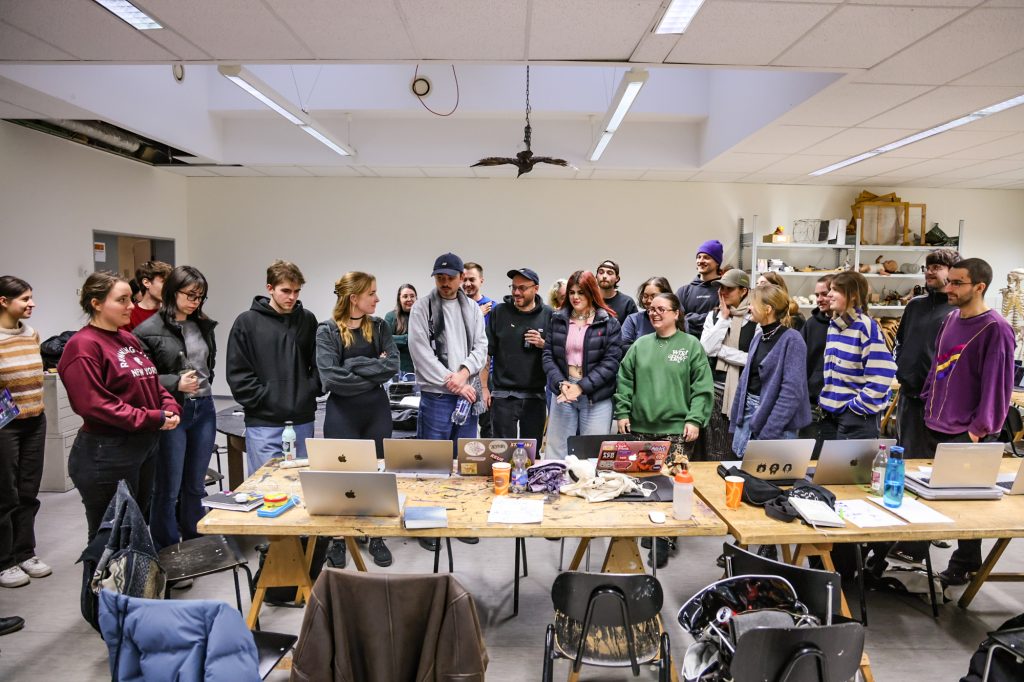 The workshop was followed by a lecture in which Kuki Iwański introduced his artistic practice. Working across identity, installation and print, his work investigates how symbols, colour and form influence collective experience. He is widely known for his experimental flags and large-scale spatial interventions, including the ongoing project Ghosts of Tomorrow, exhibited in cities throughout Europe and Asia. His visual language is bold and highly reduced, often critically engaging with consumerism, memory and the transformations of contemporary life. Alongside commissioned work, he continues to develop long-term artistic projects that explore clarity, reduction and the communicative power of imagery in public space.
