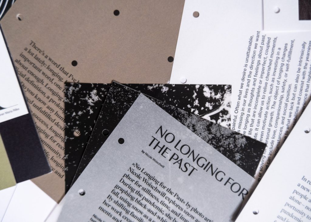 Die Inhalte sind modular aufgebaut, sodass Leserinnen ihr eigenes Exemplar individuell zusammenstellen können. Dadurch wird jedes Heft zu einer persönlichen Zusammenstellung von Texten und Bildern, die sich leise entfalten und Raum für eigene Interpretationen und Emotionen öffnen. So wird ein Ort geschaffen, an dem Erinnerungen, stille Sehnsucht und das Gefühl von Ferne auf poetische Weise sichtbar werden.