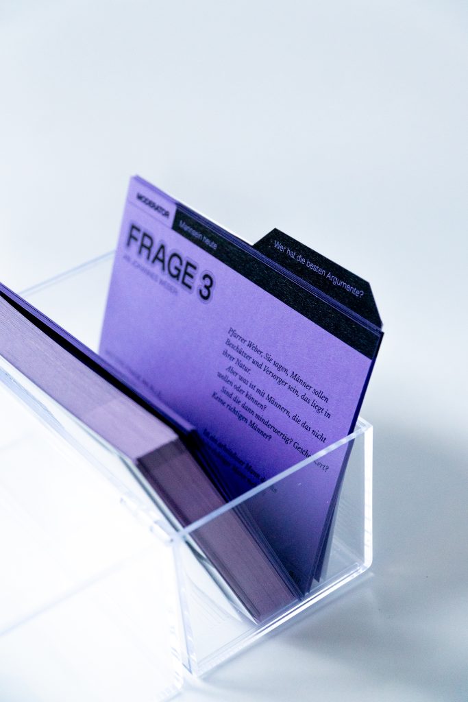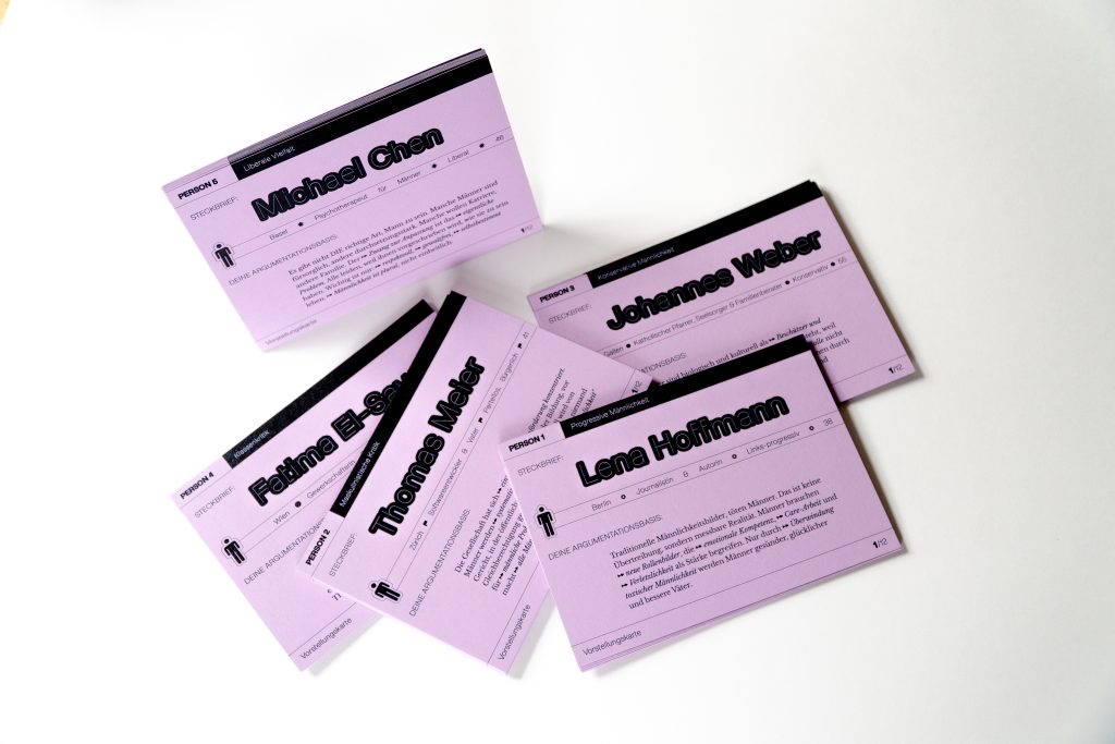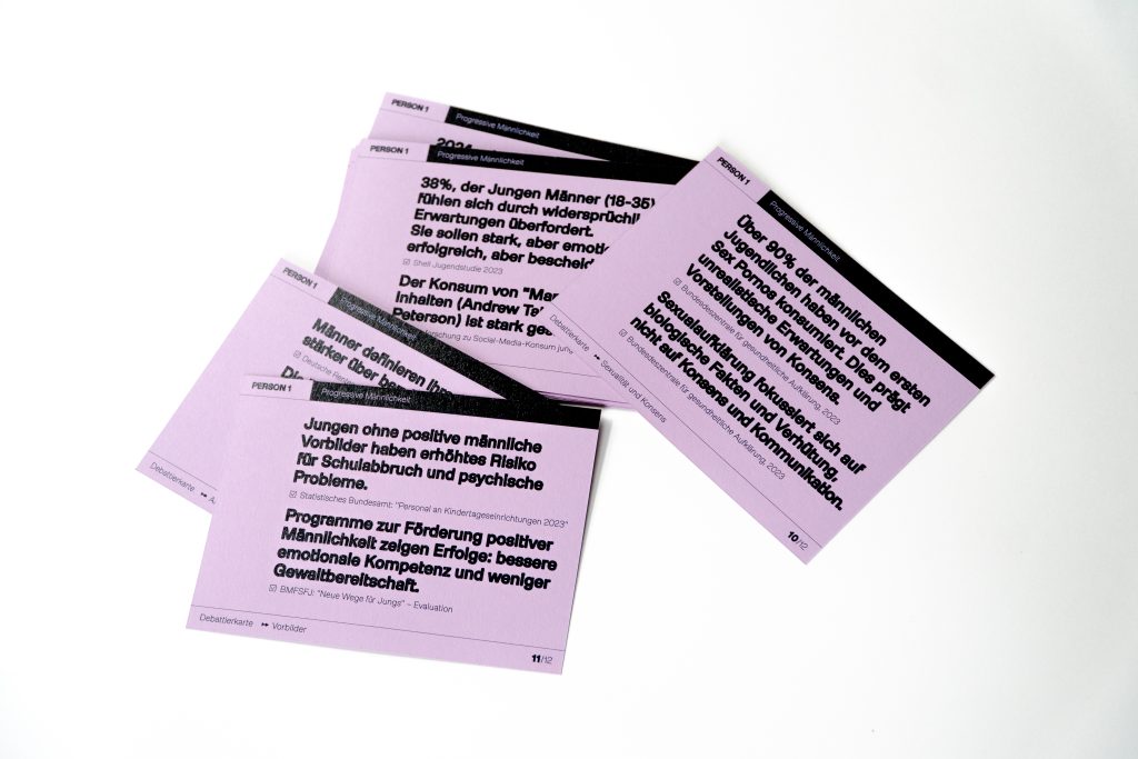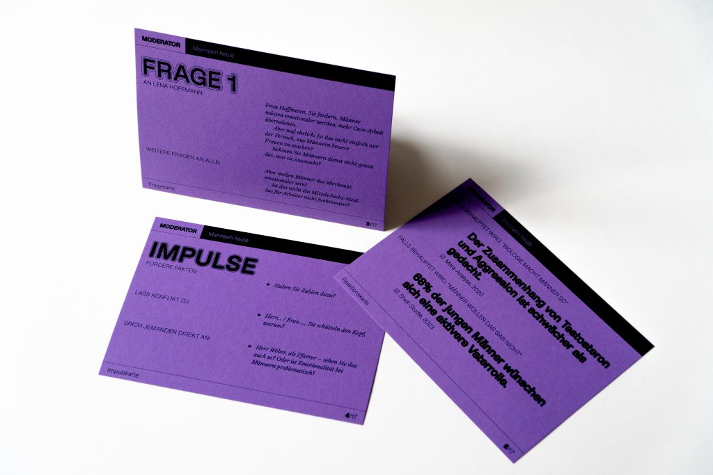 Das Format folgt stets demselben Aufbau, sodass es sich etablieren und die Debatte sich vertiefen kann. Jeden Monat ein neues Thema – den Auftakt macht: Mannsein heute.
